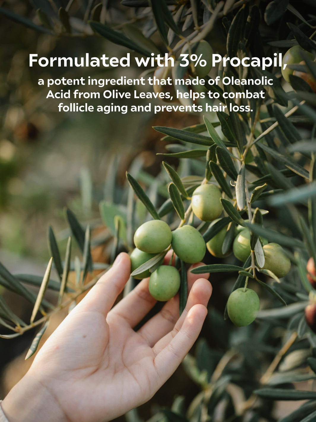 A non-oily, water-based scalp serum to strengthen hair roots and support growth.