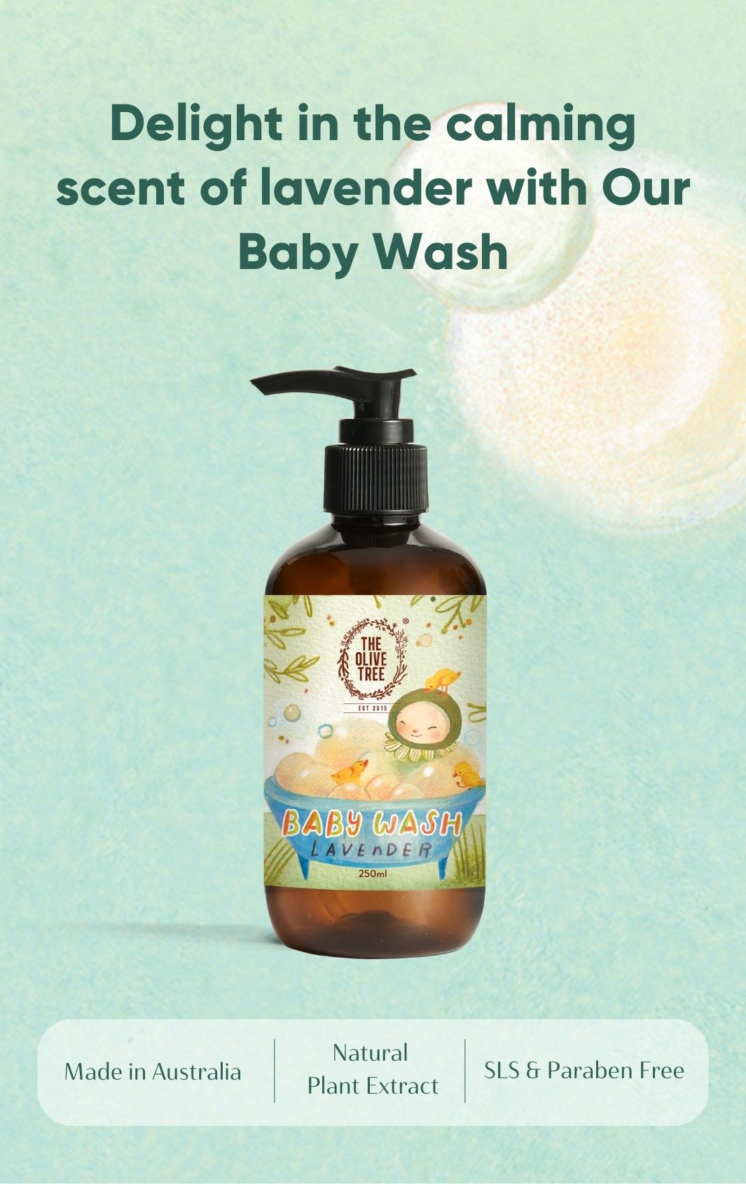 A lovingly crafted Lavender Baby Wash, especially formulated for your little one's delicate skin. We understand the importance of your child's well-being, which is why our baby wash is entirely free from harmful ingredients like Sodium Lauryl Sulfate, parabens, synthetic colors, and fragrances.
